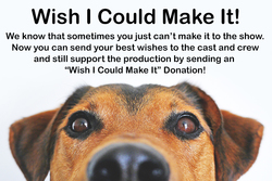 Can’t make it to the show? You can still show your support to the cast and crew by giving a “Wish I Could Make It” donation. We will put your name and message on a “fancy” card and proudly place it in the lobby so the cast and crew can see your support! Ticket sales are critical to sustain our program and your donation today helps us pay for costumes, utility, royalties and other productions expenses. Thank you for your support!!!